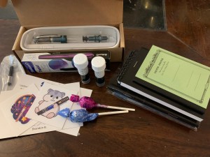 As I mentioned, I’ve been watching a lot of ink swatching videos on YouTube and I think the Ink Swatch books are a really neat idea. In fact after I picked up a colo-ring deck I decided to make a few more swatch books from paper I actually use – Tomoe River, Rhodia, Clairefontaine. I didn’t want to use the loose leaf sheets I had of Tomoe River and I didn’t feel like wasting a large Rhodia pad that could be better used as something else. I did have a small notebook for Clairefontaine though so I started with that. Then I took a look at the sample paper pack that Goulet offers. It’s changed somewhat since the first time I ordered it, but it had the two papers I was missing plus a few others that I might take a look at later. Then while I was there I looked at my wish list. On impulse I added Pelikan Twist plus a converter and randomly chose one of two twisbi models (Twisbi Eco & Twisbi 580ALR) I have been eyeing for a while now. I added another surprise me ink sample and hit the purchase button. This parcel was probably the one I was most looking forward to because of the Twisbi. Funny. I haven’t taken it out of that case yet. Oh. It’s in the limited edition color Prussian Blue, by the way. I spent a small part of the evening yesterday creating the ink swatch books which you will see in my next post.