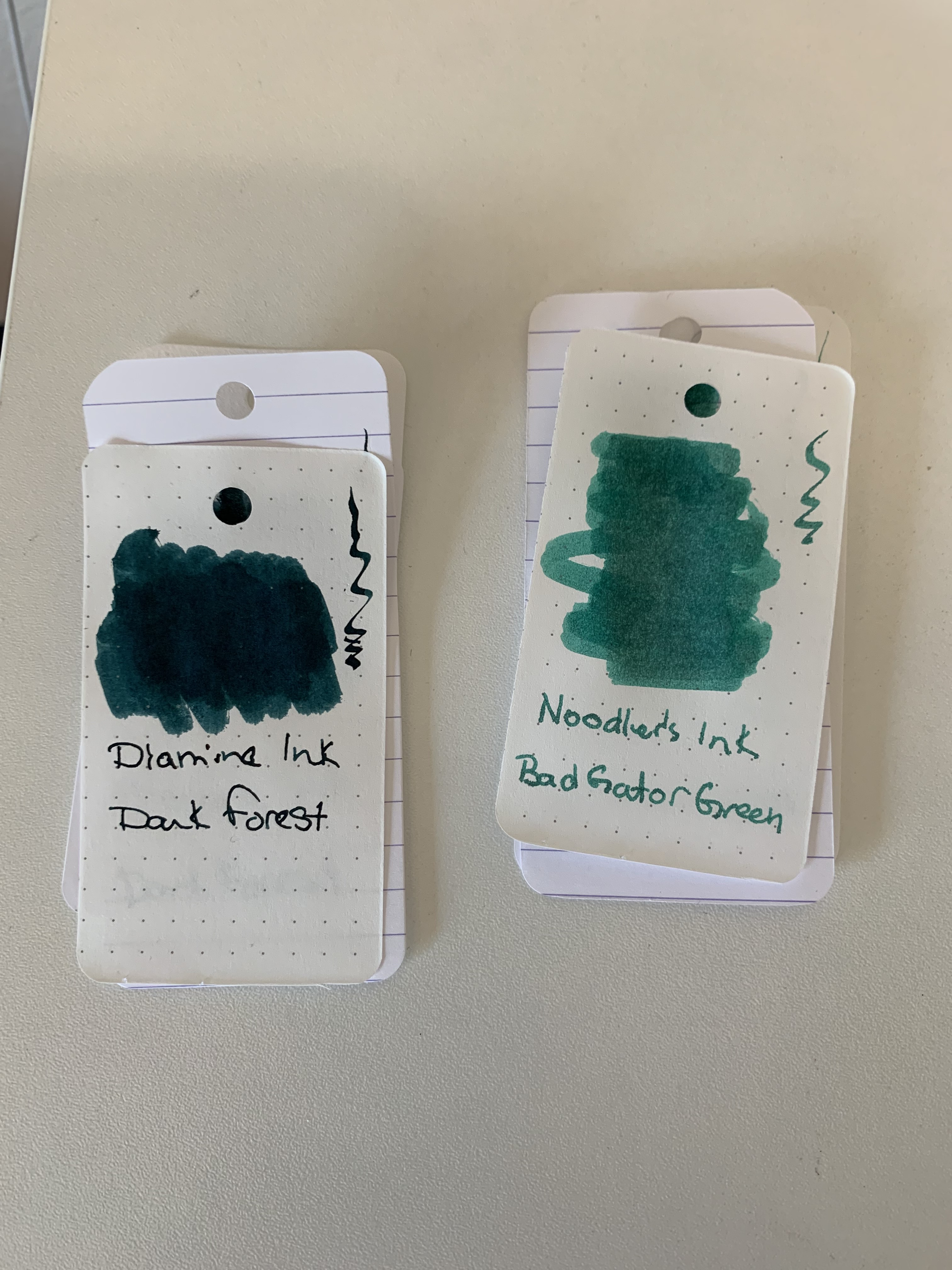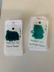Diamine Ink Dark Forest & Noodles Ink Bad Gator Green.