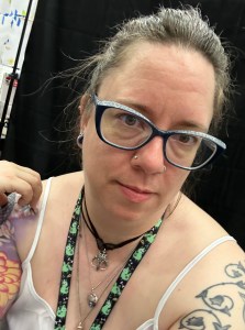 I managed to put together a closet cosplay of Harley Quinn for Friday because I didn’t have the brain space for much else. I almost opted not to but in the end with Ellen helping to lace me into the corset I felt somewhat more comfortable sitting at a booth on my own. Even if I did manage to leave a few key pieces (hat, hair-ties) at home.