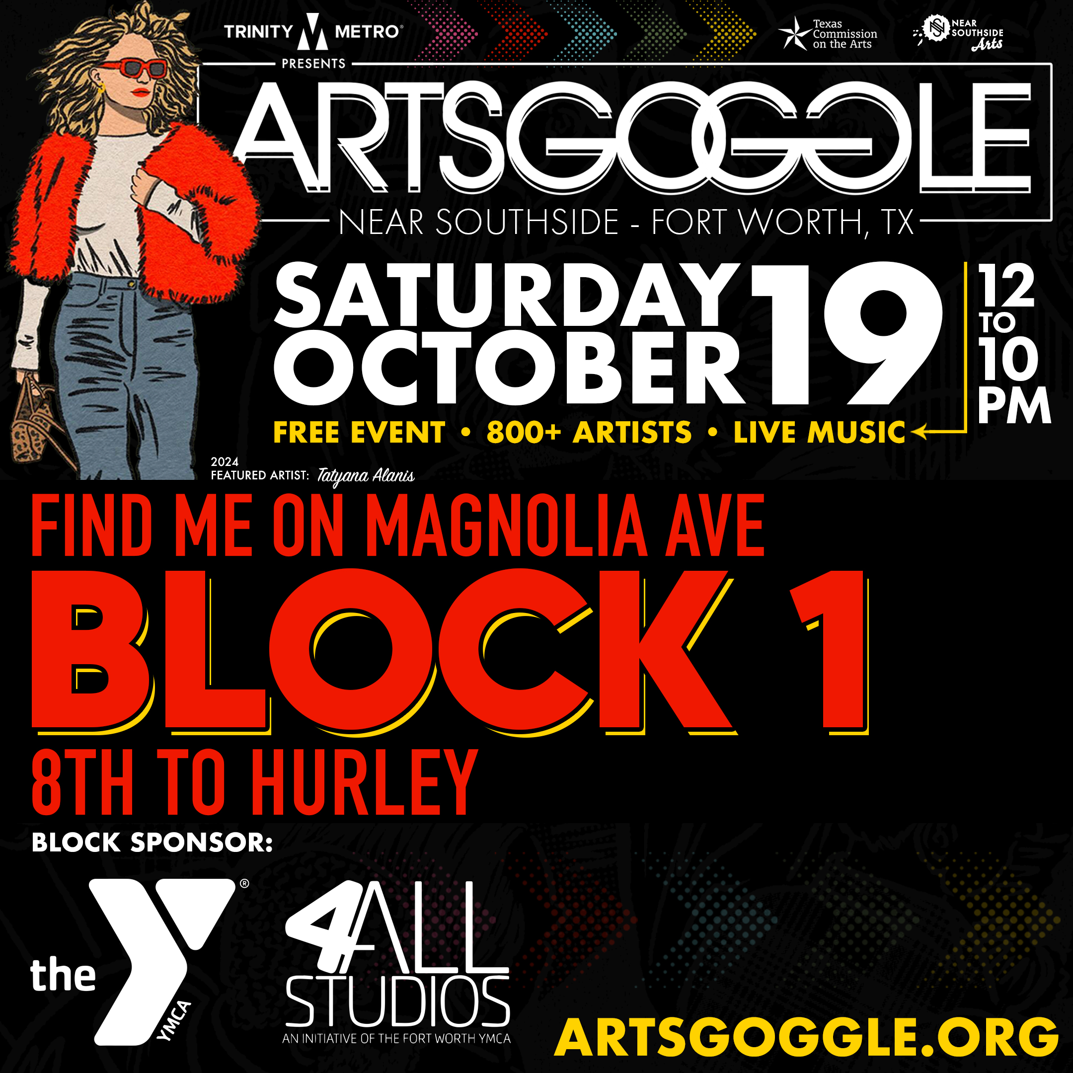 I’ll be participating alongside more than 1,000 artists, 50 bands, 80 local food vendors and more on Magnolia Avenue in Fort Worth’s Near Southside cultural district. Find all the details about this FREE family-friendly event at www.artsgoggle.org