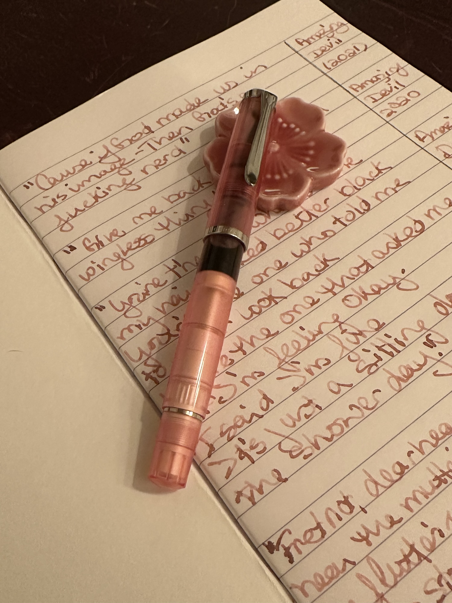 Ironically, I waited several more weeks after the pen arrived to ink it up because I decided it needed to be inked with the companion ink Edelstein Rose Quartz which I did not own. I’m positive that I can link this decision to the product write-up on Atlas for the pen itself. It included a reference to the ink color in a rather striking manner (unfortunately I can’t quote it because the product page no longer exists) and the imagery stuck in my brain weeks later so kudos to the copy writer because I am not a person that has to be matchy when pairing a pen and ink.