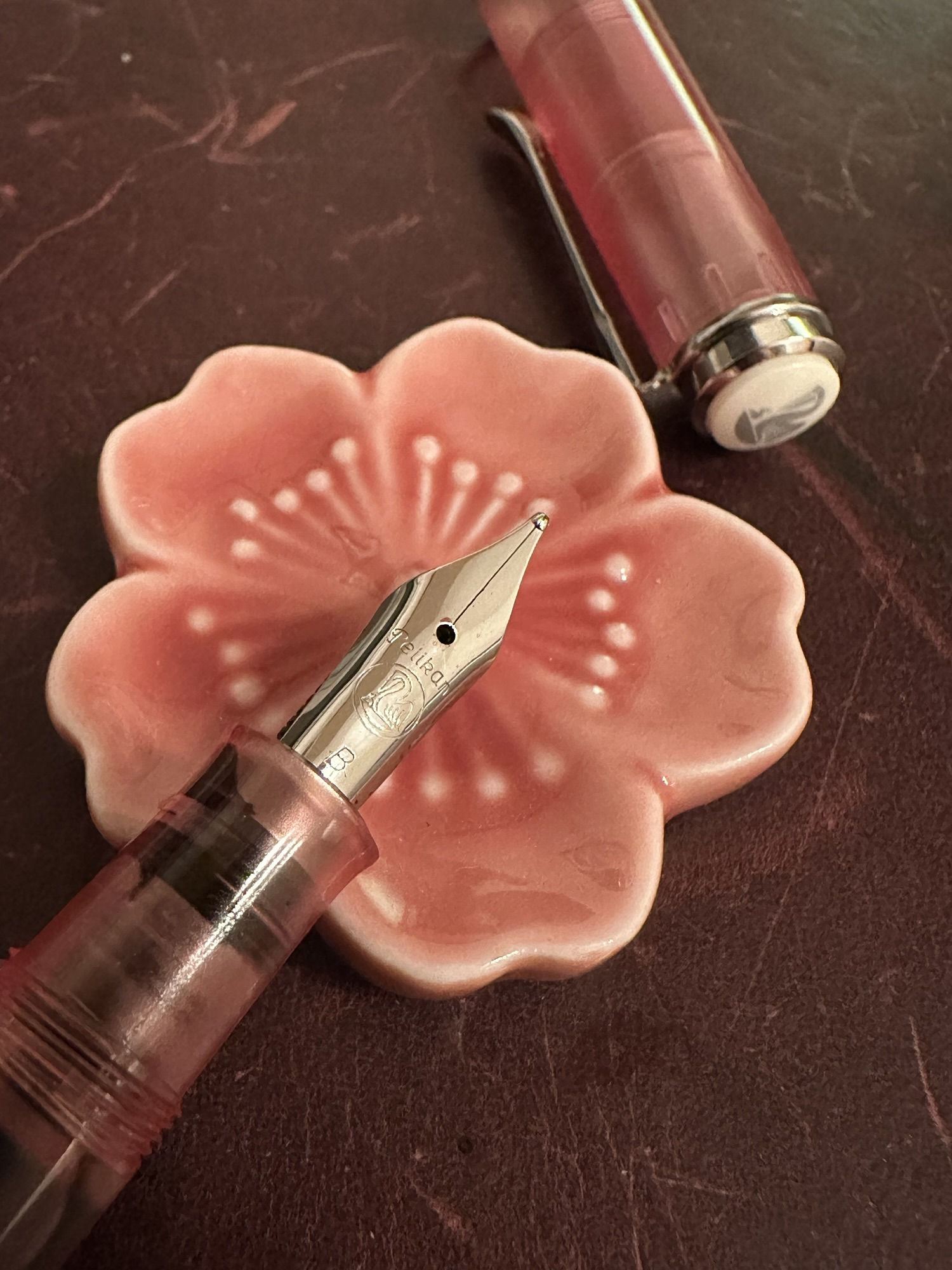National Fountain Pen Day rolled around. As expected, there were a lot of sales going on at the various pen shops both brick and mortar and online. I window-shopped as I often do. Not actually putting things in carts, because those “did you forget something?” emails are creepy. One of my favorite sites to window-shop is Atlas Stationers. Even when there isn’t an event sale they have “door-buster” deals that are fun to go through. So, it wasn’t a surprise to find the M205 model in Rose Quartz (the 2023 Edelstein color) listed as a door-buster. What was surprising was the price. It was under $100. There were two nib sizes available when I first saw the listing – medium and broad – by the time I actually ordered the pen the next day only the broad nib was left, and I was fine with that. There’s a lot you can do with a broad nib if it doesn’t write the way you want.
