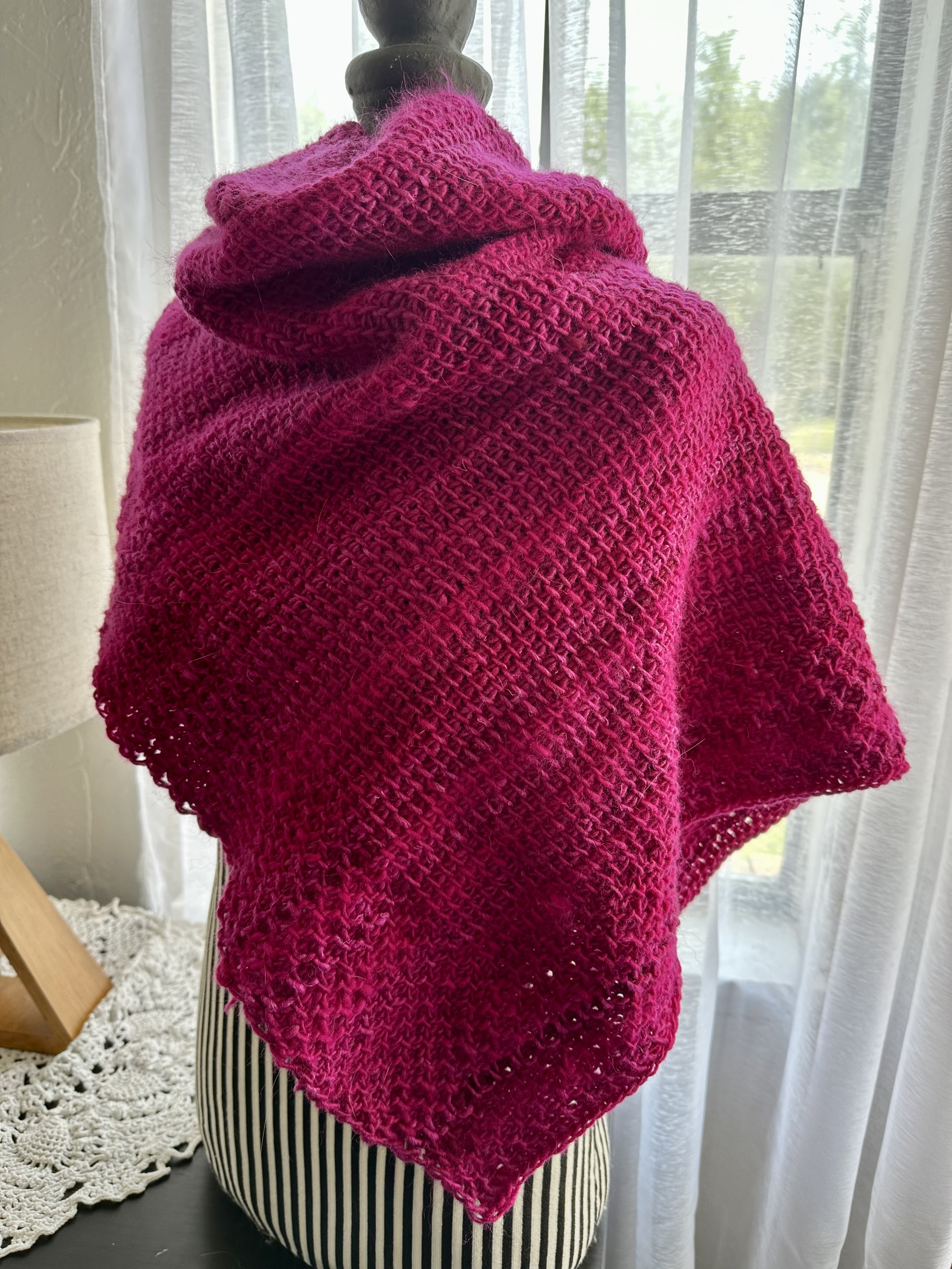 For those that might be interested in the information – when I acquired the yarn it was selling for $10 a ball so in material cost alone this wrap is $60.